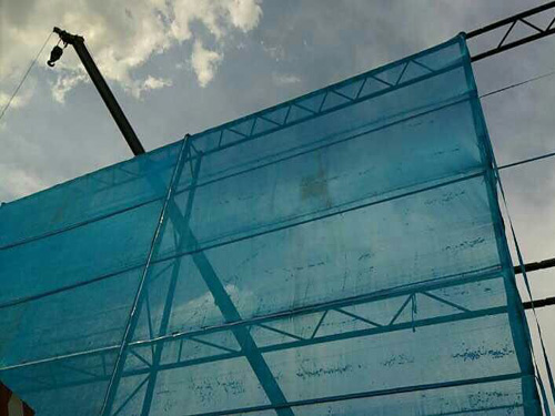 聚酯防風抑塵網具有極強的耐候性,抗紫外線輻射,強阻燃,耐熱,抗霜凍,不霉變,防腐爛,耐酸、堿、鹽腐蝕等特性,耐用性能佳,使用壽命可長達20年。其獨特的科學設計結構,既能使網體隨風抖動,使其具有自凈功能,避免粉塵積累,又能實現比剛性墻更好的濾塵效果。經風洞實驗表明,這種抑塵網綜合降塵抑塵效率可達90%以上,同時抑塵網鋼構設計簡潔,網體較輕,大量節約鋼材,從而使工程總體造價更低。